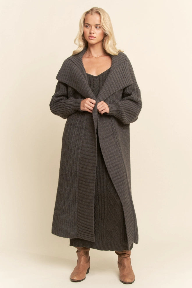 Ribbed Texture Cardigan & Maxi Dress Matching Set